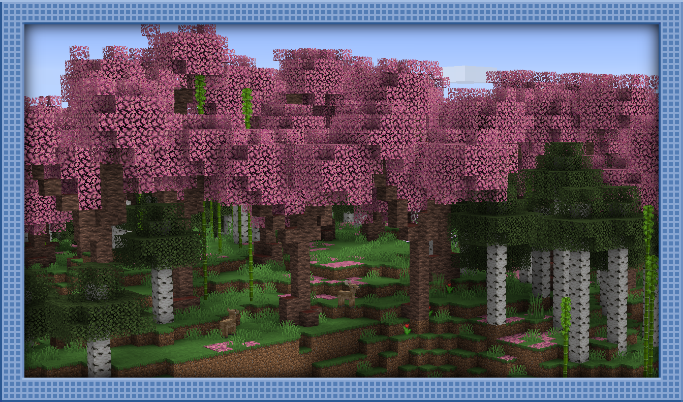 As part of many new features in the mod, the Blossom Woods biome can be found. Blossom Woods are bright pink forests, with brand new Cherry trees. Cherry Leaves give cherries when broken, which can be used to make some nice pie. Inside the biome, you can find patches of bamboo, fallen cherry leaves, new lotus flowers, and plenty of birch trees as well! The biome has a Blossom Hills variant, as well as a taller Blossom Highlands variant and a very low Blossom Valleys variant.