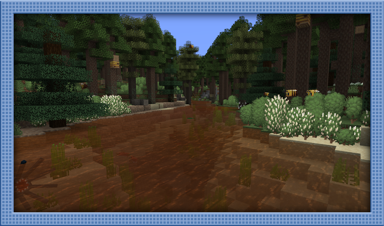 The Cedar River is a new river biome found in cold, coniferous places littered with shrubs, bees, tree lichen, and cedar trees. The cedar trees here are full of tannins, which have stained the water an iridescent brown. The sand here gets quite muddy, and you might notice some of it seems suspicious...