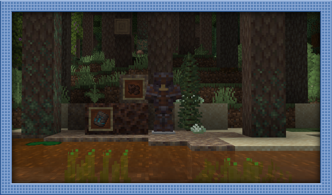 Bog Iron is a new resource found in the suspicious muddy sand scattered around Cedar Rivers. Breaking its block form can yield more versatile iron nuggets; it can be used directly as a trim material. It pairs nicely with the new Keeper trim, which is also found in the muddy sand.