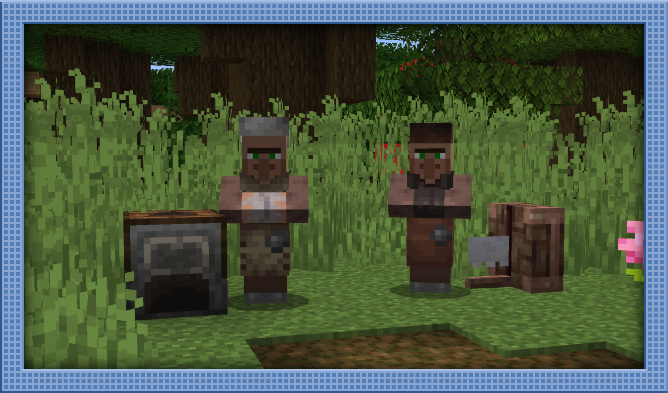 After adding all these wood types, we realized crafting recipes for the variants are somewhat inconvenient. Sawmills can now be made, which function similarly to Stonecutters but for wood-related recipes! They are also the workstation for the new Carpenter villager, who sells blocks and items related to wood and trees.