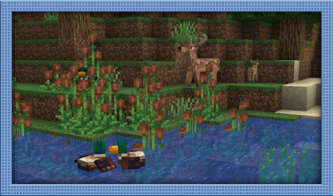 There is a nice selection of new wildlife, with plenty more to come! You can find Deer wandering in Forest biomes, and Ducks in Swamp biomes!