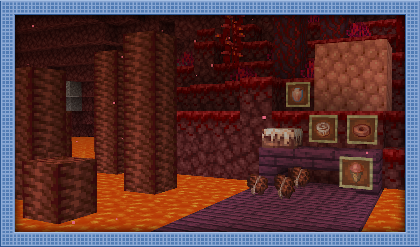Continuing the trend of unique locations for these last three flavors, as opposed to just an overworld biome, Cinnamon will be found in the Nether, with a fire-based effect that is still a work-in-progress. Cinnamon Stalks will be found in lava and will be found alongside Cinnamon Stick Bugs! Cinnamon can be made into Cinnamon Rolls, as well as the best item in the mod, Cinnamon Bagels!