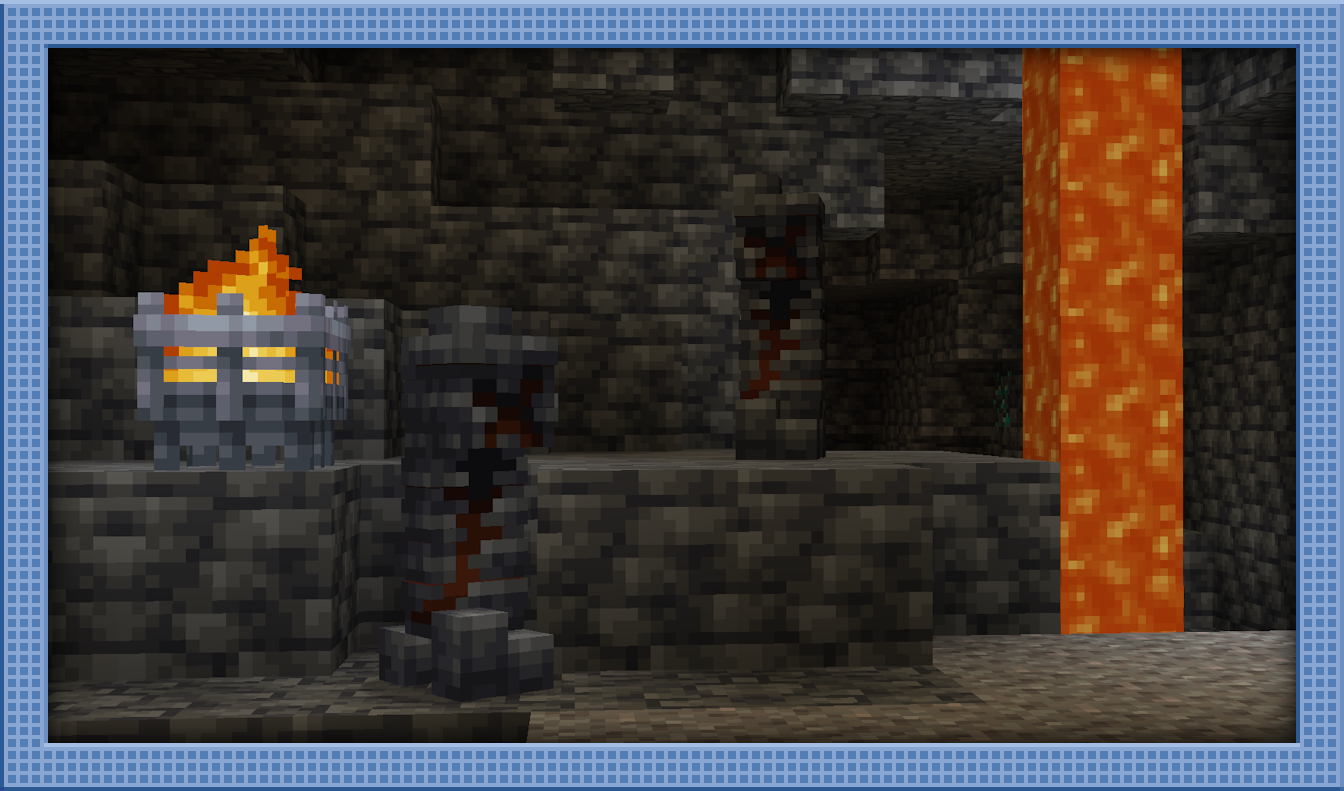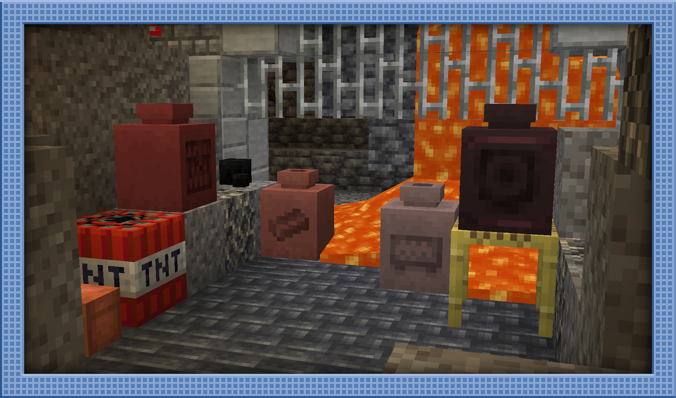 Forges are a brand new structure that are somewhat common throughout the world, anywhere in the cave layer. They resemble large industrial furnaces and have piles of old smelting remnants left inside. Whilst this includes Suspicious Gravel with a variety of new Sherds, Trim Templates, and other goodies, it also has the particularly hazardous combination of TNT and Flint Blocks. One wrong move, and both you and the remaining loot will go out with a bang!