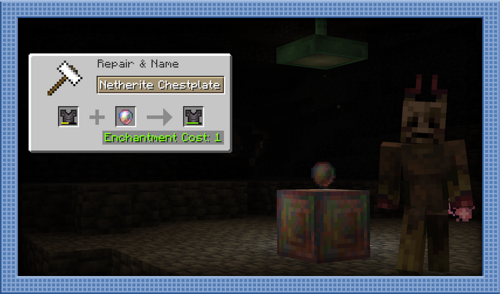 Remember Environmental’s Explorer Gear? Environmental’s “Architect’s Belt” has a spiritual successor in the form of the Toolbelt, a simpler take on the concept that works a bit better alongside existing content. The Toolbelt offers two additional block reach, with an enchantment available, Extending, that allows for up to three more, as opposed to the RPG-esque level up system. It is sold as a Master trade from Masons, and found in Stronghold Corridor and Woodland mansion chests.